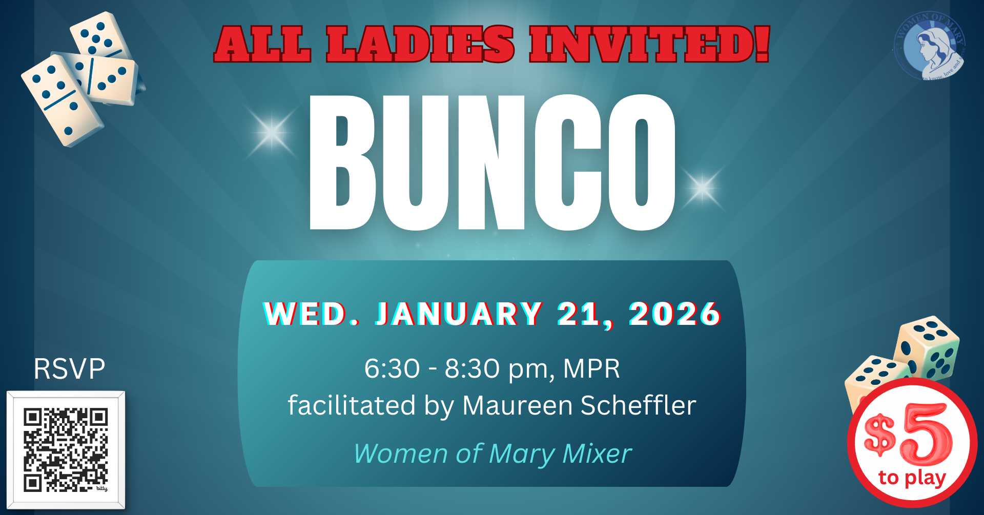 Following the example of our spiritual mother, this group seeks to bring the women of our parish closer to Jesus. Through service and fellowship, we offer our members the opportunity to better know, love, and serve our Lord. As a large group, we meet once a month, usually in the evenings, with small group meet-ups and service events in between. Join us for our next meeting!